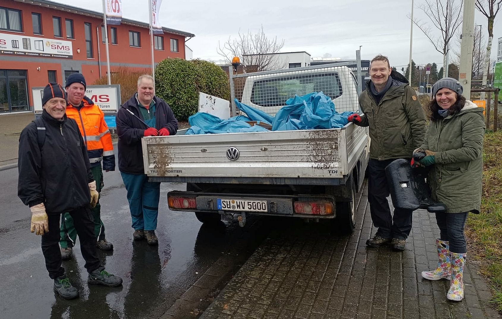 Der Auftakt am ersten Sammeltag fand bei Nieselregen statt, der jedoch nicht die Motivation der Teilnehmenden trübte. Freundlicher zeigte sich das Wetter am zweiten Aktionstag: Bei Sonnenschein wurde das Müllsammeln dann erfolgreich abgeschlossen. Neben unzähligen Verpackungsabfällen wurden auch größere Gegenstände illegal entsorgt aufgefunden, darunter Autoreifen, Holzreste, ein Sofa, mehrere Matratzen, ein Bürostuhl sowie Lampen. Besonders problematisch: Auch Sondermüll wie Essigsäure und Elektroschrott musste fachgerecht entsorgt werden.