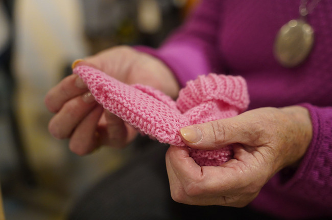 Helga Wachtel lächelt zufrieden, wenn sie von den Willkommenssocken spricht. Denn sie kann nicht nur einer ihrer Lieblingsbeschäftigungen nachgehen, sondern freut sich, dass ihre Arbeit einen Mehrwert hat: Schließlich sorgt sie dafür, dass Babys warme Füße haben und ganz nebenbei noch ganz schick dabei aussehen.