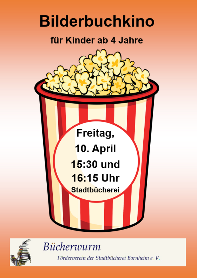 Am Freitag, 10. April 2026, lädt die Stadtbücherei Bornheim Kinder ab vier Jahren wieder zum Bilderbuchkino ein.