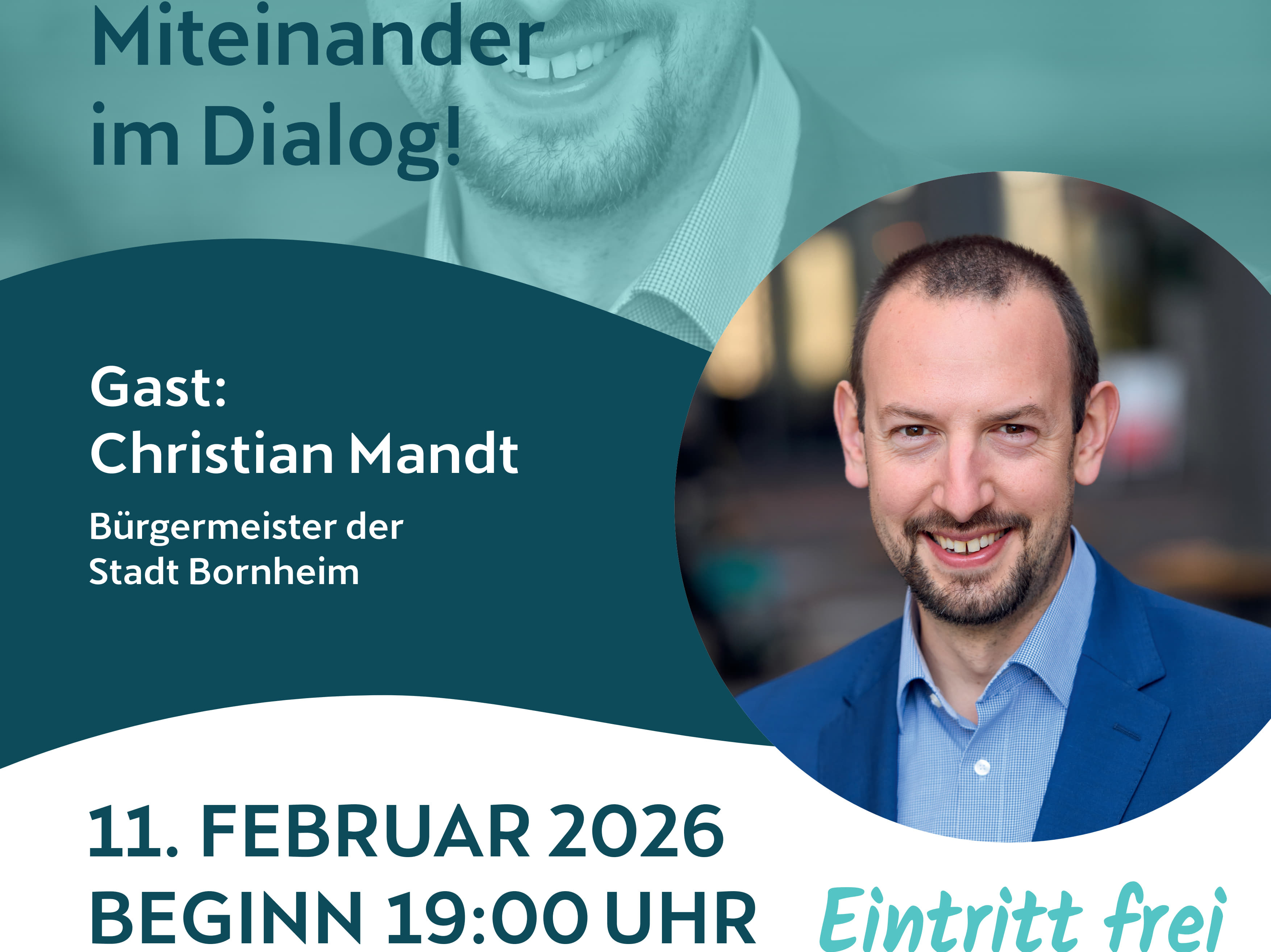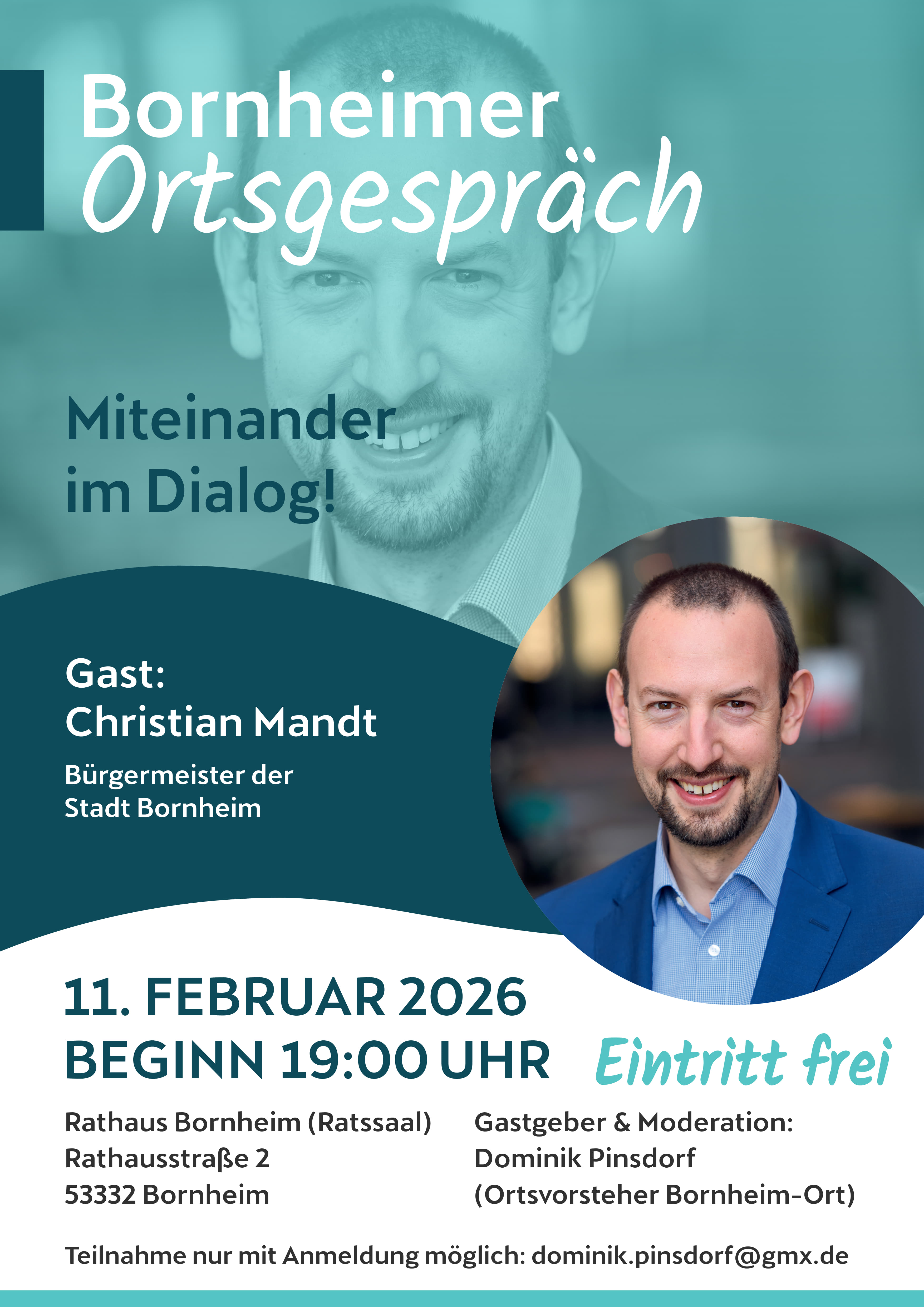 Am Mittwoch, 11. Februar 2026, ist Bürgermeister Christian Mandt zu Gast beim Bornheimer Ortsgespräch im Rathaus Bornheim.