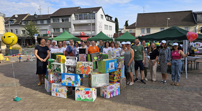 Ein Bauwerk der besonderen Art hatten Bornheimer Kitas und Kindertagespflegestellen zum Weltkindertag am 20. September auf dem Peter-Fryns-Platz errichtet.