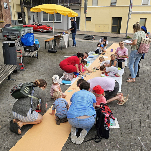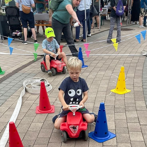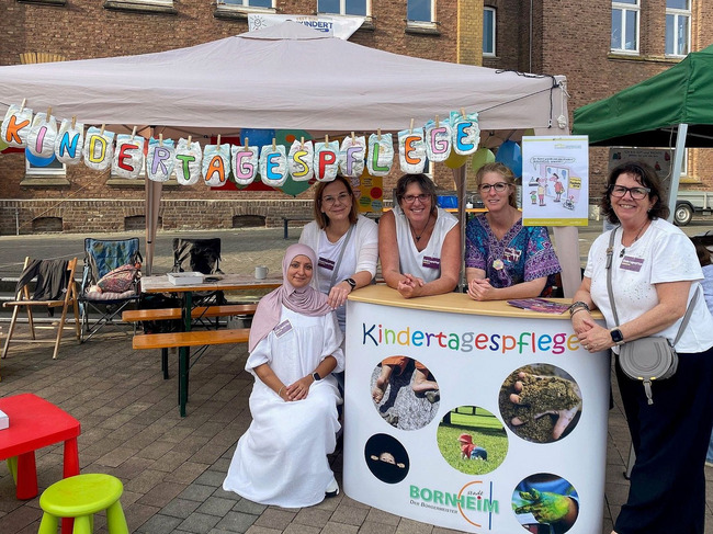 Derart gestärkt tobten sich die Kleinen dann an den Ständen der Familienzentren, Kitas und Kindertagespflegestellen aus. Dort konnten sie Ketten anfertigen, Bobbycar fahren, Handabdrücke verewigen, Blumen basteln, Glitzer-Tattoos abholen, Buttons gestalten, Riesenseifenblasen fliegen lassen, Schlüsselanhänger herstellen, Vier-gewinnt spielen und Windräder bauen.