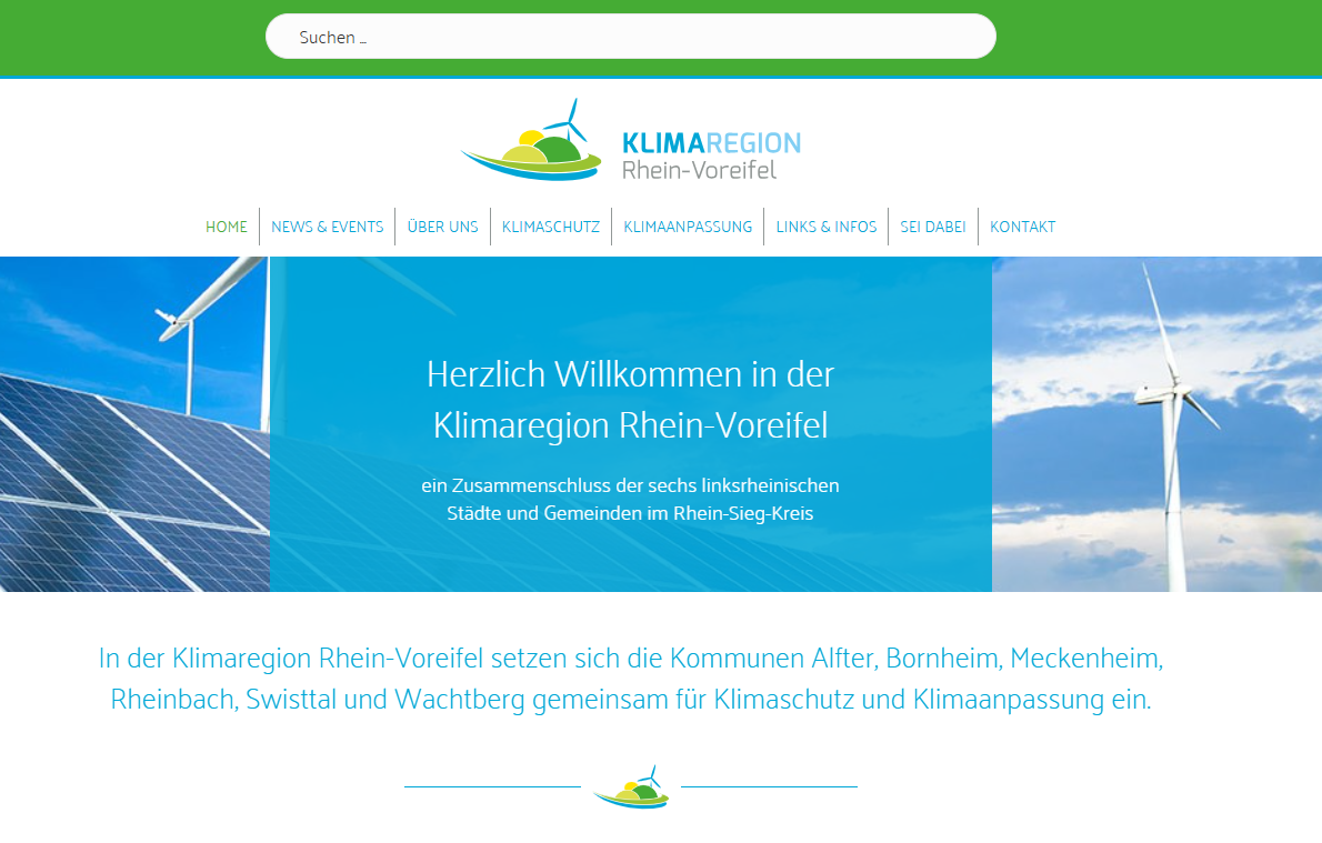 Die neue Website bietet nicht nur alle wichtigen Informationen zu aktuellen Projekten und Veranstaltungen; sie zeigt die Historie der Klimaregion Rhein-Voreifel und stellt die kommunalen und interkommunalen Kontaktpersonen vor.