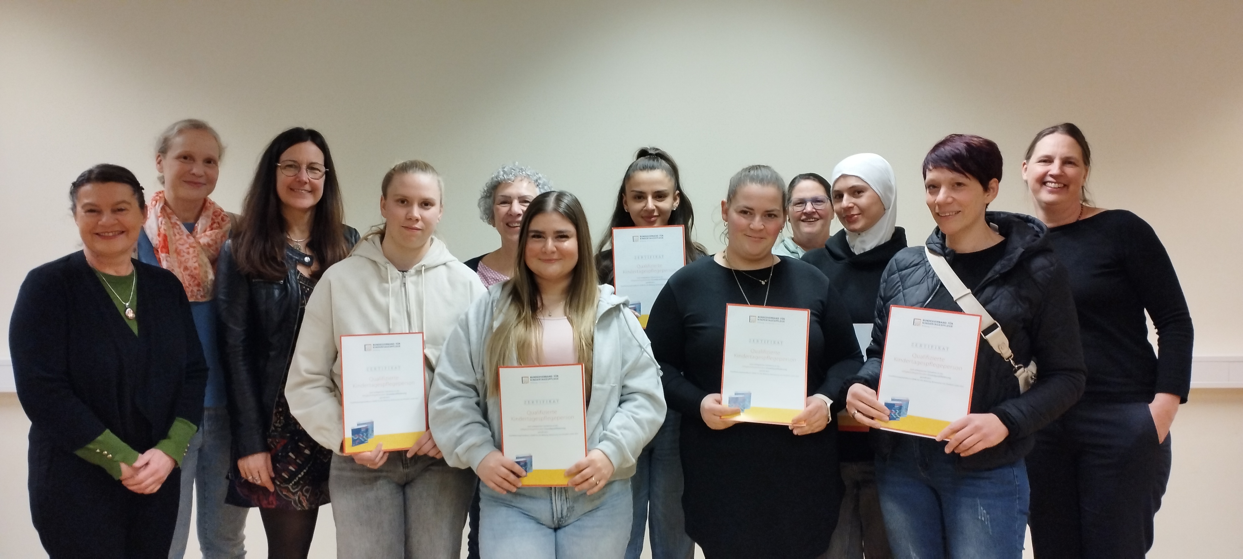 Das Zertifikat als Tagesmutter erhalten Nicole Heimbach, Tanja Pohl, Ilayda Karakus, Sabrina Benner, Julia Osmanski, Sara Ozdoeva, Anna-Maria Boukoura und Berit Mathis.