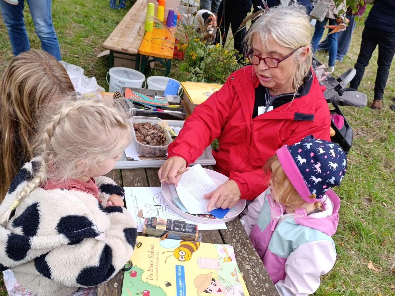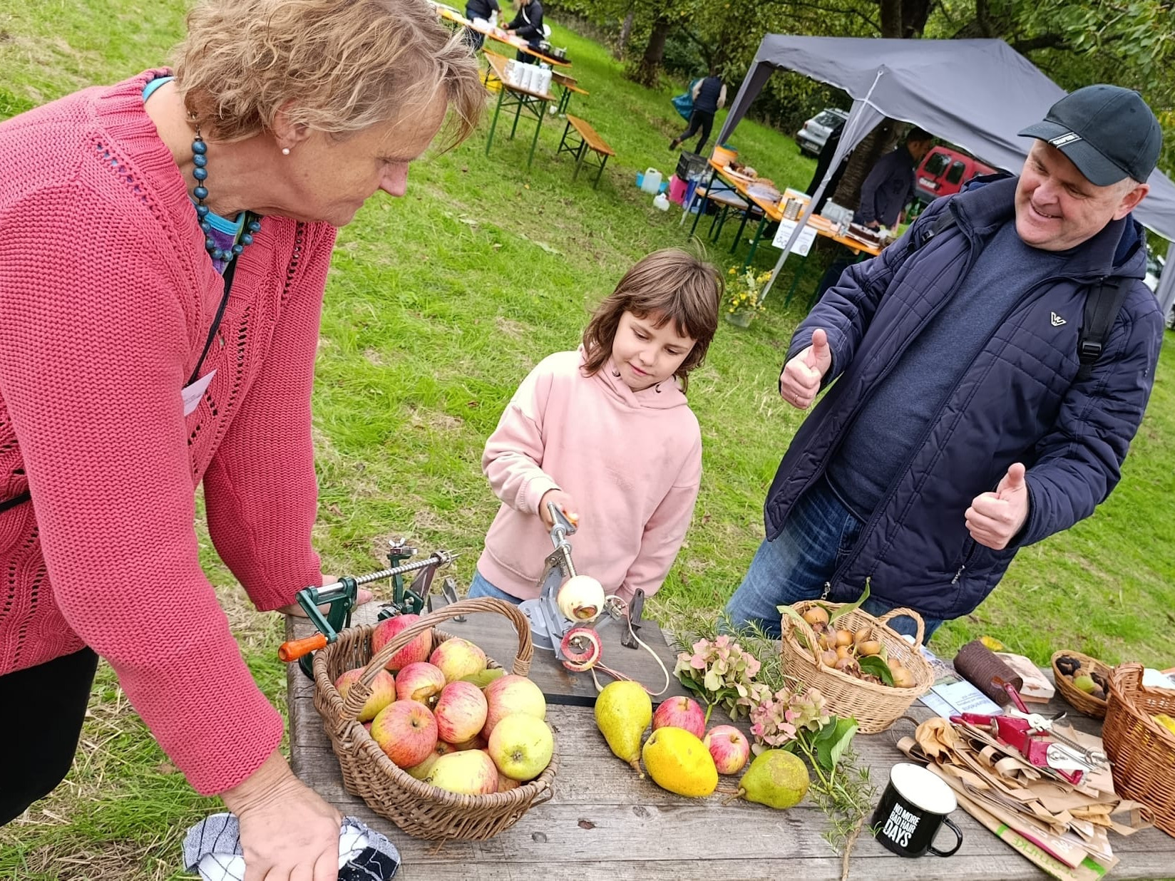 Das Programm war vielfältig – und vor allem für die Kleinen gab es viel zum Mitmachen. Beim Apfelwettschälen zählten Geschick und Tempo, beim Nistkästenbauen handwerkliches Talent. Kreative Kinder konnten malen und basteln – oder einfach über die Wiese toben und in den alten Obstbäumen klettern. Wer wollte, pflückte sich ein paar Äpfel direkt vom Baum.