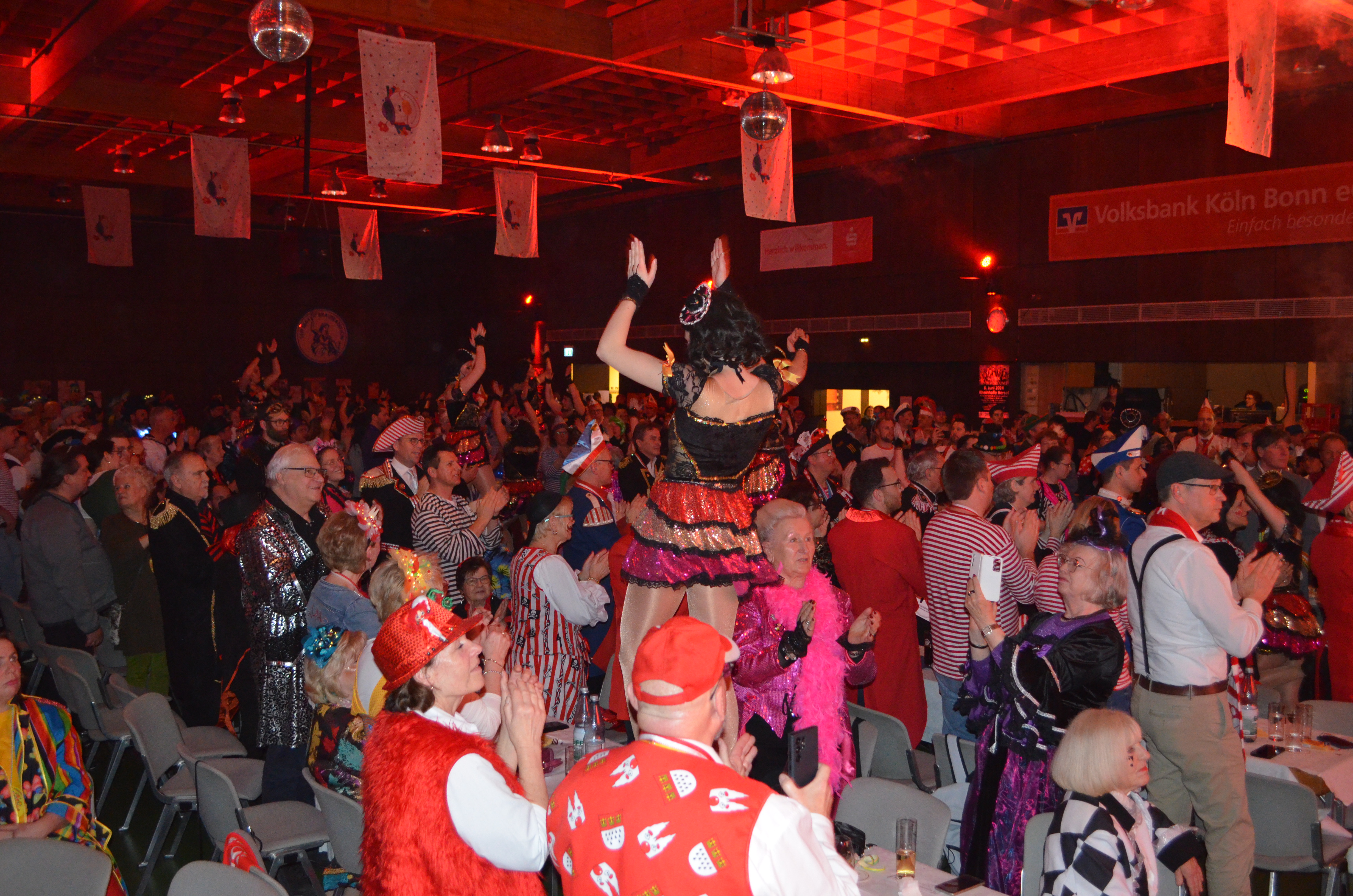 So dürfen sich die Gäste auf „dä Tuppes vum Land“ Jörg Runge mit seinen pfiffig-frechen Reimen und Achnes Kasulke als Deutschlands prominenteste Putzfrau im schrägen Outfit freuen. Präzision, Höhenflüge und Akrobatik verspricht das Tanzcorps Colonia Rut Wiess. Ebenfalls für Stimmung sorgen „Los Rockos“ und „StadtRand“ mit einem Musikmix aus Pop und Rock gepaart mit raffinierten Texten.