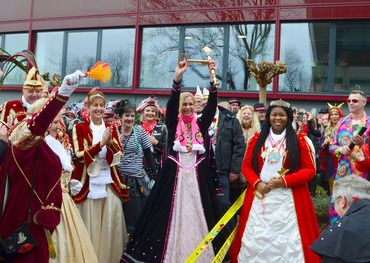 Bürgermeister Christoph Becker alias "Lucky Luke" und sein tapferes Dutzend des Verwaltungsteams stemmten sich nach Kräften gegen die nicht nur akustisch weit überlegene Übermacht der jecken Wiever, die von Roisdorfs Prinzessin Sabine I. (Lehnen) angeführt wurden. Es half am Ende alles nichts.Zum Bericht mit vielen Fotos gelangen Sie HIER