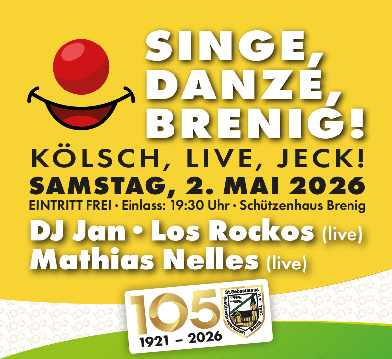Kölsche Musik, Mitsingen und ausgelassene Stimmung: Unter dem Motto „Singe, Danze, Brenig!“ feiern die Breniger Schützen ihr 105-jähriges Jubiläum mit einem besonderen Abend im Schützenhaus Brenig.