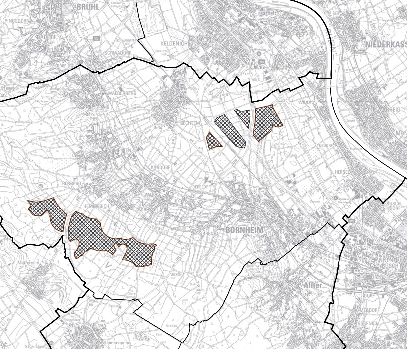 Flächen im Landschaftsschutzgebiet werden nicht pauschal als weiche Tabuzonen eingestuft. So ist die Errichtung von WEA in Landschaftsschutzgebieten möglich, wenn die Befreiungsvoraussetzungen nach § 67 Bundesnaturschutzgesetz erfüllt sind. Landschaftsschutzgebiete stellen also auch in Bornheim kein weiches Ausschlusskriterium dar.
